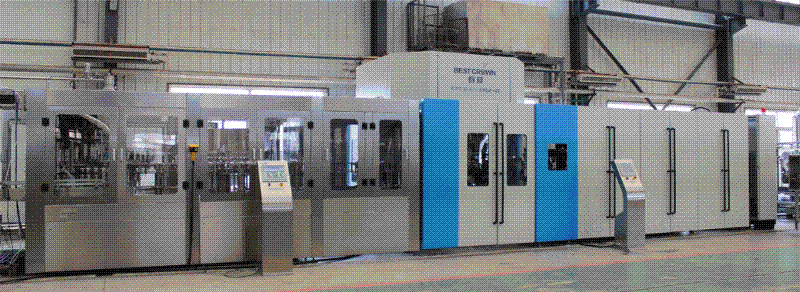 此新型設(shè)備應(yīng)用了百冠多項(xiàng)技改創(chuàng)新。其最大特點(diǎn)即在原來(lái)吹瓶/灌裝/旋蓋三合一體式機(jī)組的基礎(chǔ)上,增加了空瓶沖洗模塊,變身為四合一體式結(jié)構(gòu)。此舉可在高溫高濕和非現(xiàn)場(chǎng)制坯的生產(chǎn)環(huán)境下,有效降低空瓶及產(chǎn)品染菌率。